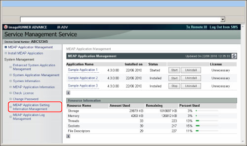 Click [MEAP Application Setting Information Management].