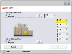 A screen prompting you to load paper also appears if the selected paper drawer is not fully inserted into the machine. Make sure that the paper drawer is properly in place.