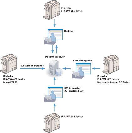 Documents imported with imageWARE Scan Manager DS can be released to "Document Server," which is the core imageWARE series software product utilised in various business situations.