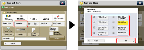 If you are storing files in a mail box, the resolution is fixed to 600 dpi.