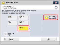 Even if you select [OCR (Text Searchable)], text may not be detected correctly in some cases.(See "If OCR (Text Searchable) Performs Inadequately.")