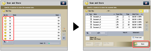 As an example, the procedure for selecting a mail box as the storage location is explained in this section.