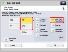 Even if you select [OCR (Text Searchable)], text may not be detected correctly in some cases. (See "If OCR (Text Searchable) Performs Inadequately.")