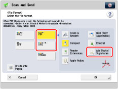 Select [PDF] or [XPS] → press [Add Digital Signatures].