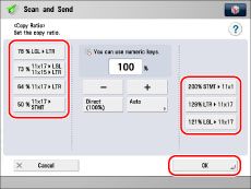 To return the ratio to 100%, press [Direct (100%)].