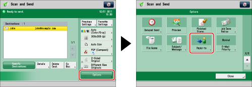 If you set a login service for the machine and set [Specify Authentication User Dest. to Reply] to 'On', the e-mail address of the login user appears as the reply-to address. (See "Setting an Authorized User E-Mail Address as the Reply-to Destination.")