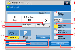 Press to cancel all settings. (The machine restores the default settings for Access Stored Files.) |