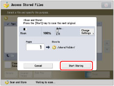 If the following screen is displayed, after the last batch of originals is scanned, press [Start Storing].