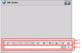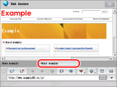 Web Access is a function that enables you to browse Web pages using the touch panel display of this machine. When you press [Web Access], the following screen appears. This screen is called the Web Access screen. By entering a URL, you can browse various Web pages. Note that the Web pages displayed on the Web Access screenshots in this category are all samples.