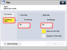 - (numeric keys).The values for the back side can also be automatically set by selecting [Same as Front Side] or [Opposite to Front Side].