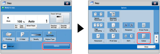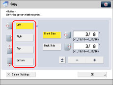 [Gutter] shifts the entire original image by the designated width. Therefore, an original whose image extends all the way to the edges of the sheet may be partially cut off on the copy.