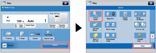 Place your original on the platen glass. You cannot copy using [Print & Check] with the originals set in the feeder.