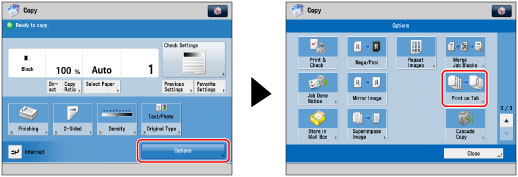 If you are feeding tab paper from a paper drawer, you must register the paper type in the paper source as tab paper beforehand. (See "Registering the Paper Size and Type for a Paper Source.")