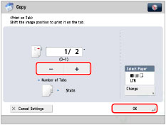 Check that the number of tabs on the tab paper displayed on the touch panel display is the same as the number of tabs on the tab paper loaded in the paper source.