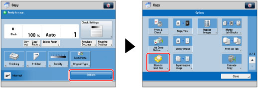 (Stop) while copying in the Store in Mail Box mode (Copy upon Storing), the job is not paused, but cancelled.You cannot store scanned documents in the Memory RX Inbox or a Confidential Fax Inbox.