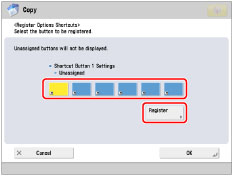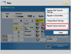 You can create shortcuts to frequently used functions in [Options]. These shortcuts then appear on the Express Copy Basic Features screen.