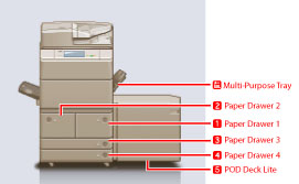 For more information on the available paper for each paper sources, see "Available Paper Stock."
