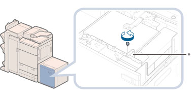 Similarly, fasten the black adjustment screw on the right using a coin, screwdriver or something similar while slightly pressing the outer size change plate against the paper stack.