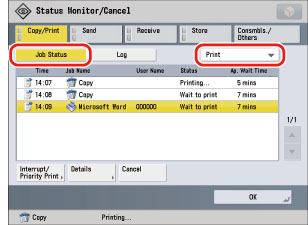 Select the job that you want to cancel from the Print Job List screen → press [Cancel].