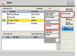 If you select multiple jobs and press [Preview], only the preview of the selected (highlighted) job is displayed.