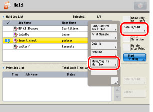If you select multiple jobs and press [Details], only the details of the selected (highlighted) job are displayed.