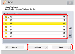If the control panel power switch is turned OFF while files are being moved or duplicated, only those jobs that have been processed up to the time when the power is turned OFF, are moved or duplicated successfully.