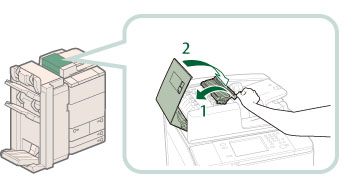 Check the location of the paper jam, and follow the procedure described below, while referring to the directions that appear on the touch panel display, to remove the jammed original.