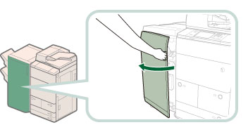 Take care when handling the optional equipment that is attached to the machine. When an optional unit's cover is opened to replace a staple cartridge, discard the punch waste, discard the trim waste, discard the staple waste, or clear paper or staple jams, prints may still be output if other optional units are operating normally, and are not involved in the paper or staple jam removal procedure.