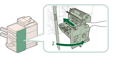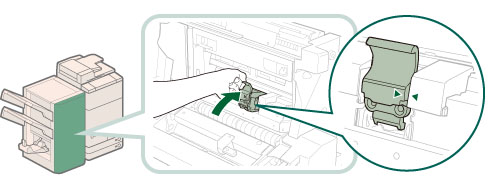1. Gently push the saddle stitcher unit back into the machine.Always make sure to push the saddle stitcher unit in as far as it can go.