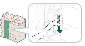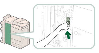 Check the location of the staple jam, and follow the procedure described below, and the procedure that appears on the touch panel display, to remove any jammed staples.