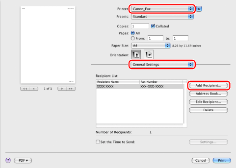 If the recipient is already registered in the address book, you can select the destination from the address book. For details about how to select an address from the address book, see "Faxing."