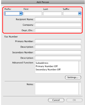 Depending on the fax model, you can click [Settings] and set a subaddress.