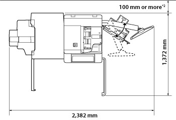 *3 Make sure to provide at least 100 mm of space if none of the Booklet Trimmer-D1, Paper Folding Unit-H1, Professional Puncher-C1, or Document Insertion Unit-K1 is installed.