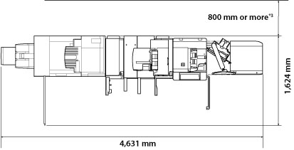 *1 Make sure to provide at least 800 mm of space if you install one or more of the following: Booklet Trimmer-D1, Paper Folding Unit-H1, Professional Puncher-C1, or Document Insertion Unit-K1.