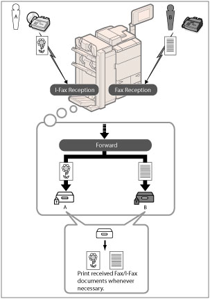 If a file received through Fax/I-Fax matches the specified forwarding conditions, it is stored in the Confidential Fax Inbox. You can print the stored file whenever necessary using the desired settings.