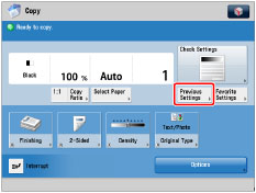 Copy settings are counted as single recent copy settings until the following times: If they are not set as a single setting, the settings cannot be recalled with [Previous Settings].