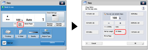 If you set the copy (zoom) ratio in [XY Ratio], the image of the original may be rotated before being printed. The machine calculates whether or not to do this based on the original size and the specified copy (zoom) ratio.
