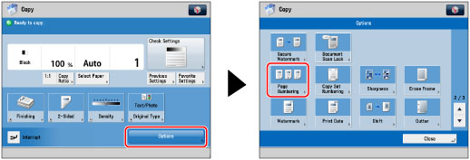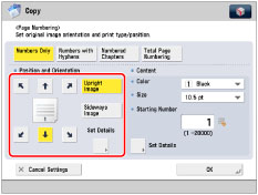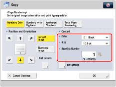 If you use [Page Numbering] with [Add Cover] or [Insert Sheets], numbers will not be printed on the inserted pages.