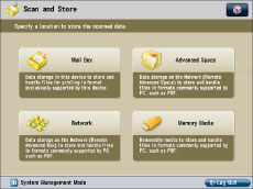 You can specify the display settings for the store location that appears when you press [Scan and Store] or [Access Stored Files].