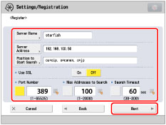 Press [Set Destination] → [Register LDAP Server] → [Register].