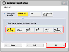 Select an item for <LDAP Server Version and Character Code> → press [OK].