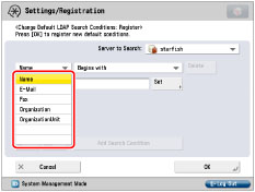 Press [Set Destination] → [Change Default LDAP Search Conditions].