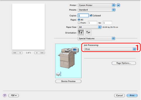 If you are using Mac OS X 10.5 or later, click [] to the right of [Printer] to display all of the settings in the [Print] dialog box.