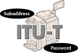 This machine's fax function is compatible with ITU-T (International Telecommunication Union - Telecommunication Standardization Sector) standard subaddress features. If the remote party's fax machine supports subaddress fax transmissions, you can send or receive documents with increased security by attaching a subaddress and a password to all of your fax transactions.