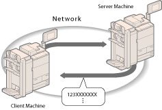 The machine can access a server machine on the network as a client machine to search for/specify destinations from the Address Book of the server machine.