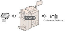 You can set the machine to automatically forward received fax documents that match the specified forwarding conditions to any destination using the desired send settings. You can also forward received fax documents to other machines (relay function) or automatically store received documents that are confidential in the Confidential Fax Inbox. You can also set automatic forwarding to activate at a specified time. Since received documents that do not match the forwarding conditions can also be forwarded to a desired destination, you can use this function to sort and deliver received fax documents to the appropriate destinations.