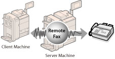You can send/receive faxes using the remote fax function and a server machine, even if this machine is not connected to a telephone line. Also, if the machine is connected to a telephone line, you can use the machine as a server machine. For details on using Remote Fax TX, see