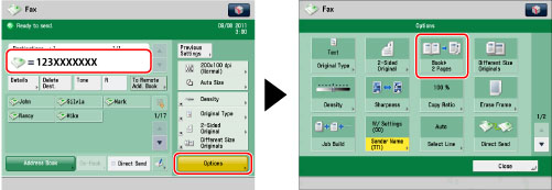 This mode enables you to scan facing pages in a book or bound original and record them onto separate pages.