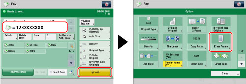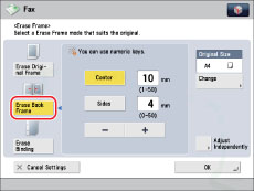 This mode enables you to remove the shadows and lines that appear when scanning various types of originals. There are three types of Erase Frame: [Erase Original Frame], [Erase Book Frame], and [Erase Binding].