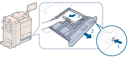 1. Press the open button on the paper drawer for which you want to adjust the paper size. |